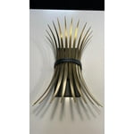 - Homestead Design: This 2-light wall sconce from the Baile family features a homestead style with a gathered wheat motif, refined by natural brass arcs and an elegant black band.