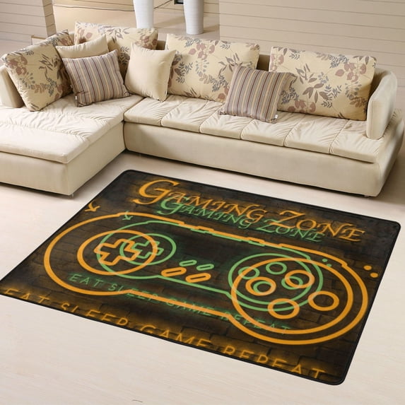 Hero image 0 of DouZhe Yellow Neon Cool Handle Gamer Zone Pattern Area Rugs Non-Slip Machine Washable Floor Mat, Neon Cool Handle Game Zone Game Slogan Style Carpet Doormat, 63x48 inches, 0 of 6