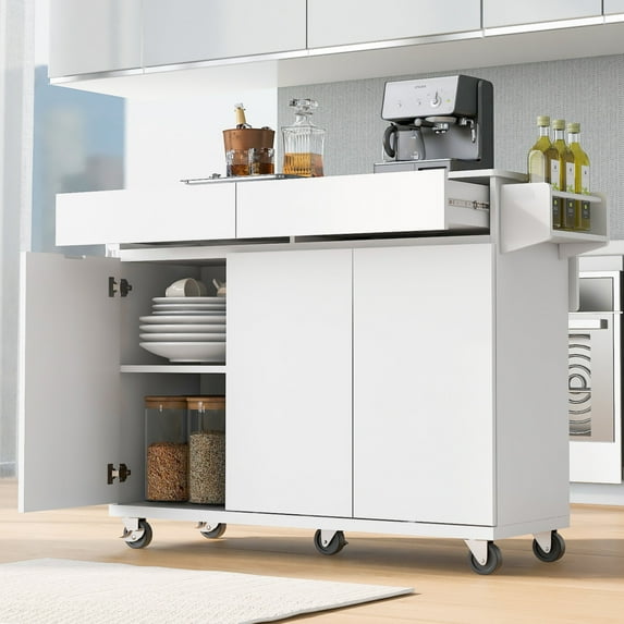 294.4 out of 5 Stars. 29 reviewsShipping, arrives in 3+ days74.5" Kitchen Island with Extendable Dining Table, Rolling Storage Cart with Spice Rack and 2 Drawers, Kitchen Dining Table with 4 Door Cabinet for Kitchen Living Room, White $349.49 Was $388.79