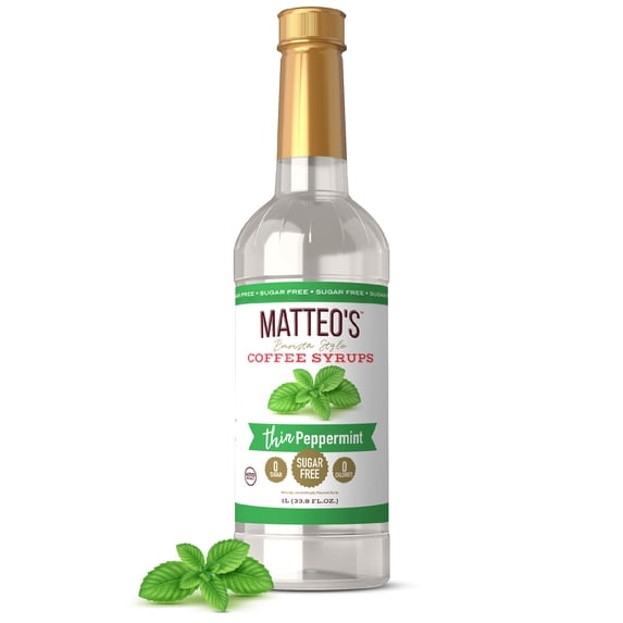 Matteo's Sugar Free Peppermint Coffee Syrups – 33.8oz (Single bottle)