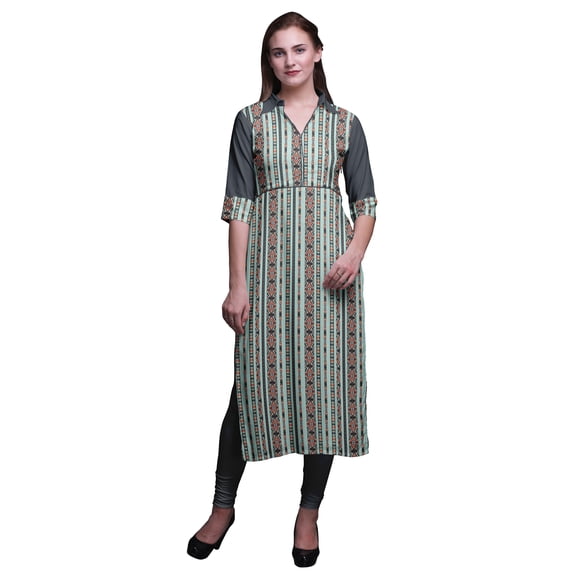 Hero image 0 of Bimba Rayon Printed Straight Long Kurtis For Women Panel Kurta Summer Tunic, 0 of 6