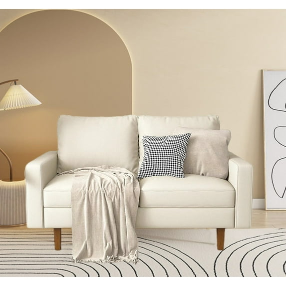 58" Faux Leather Square Arm Loveseat Mid Century Small Sofa with Solid Wood Legs for Living Room, White58 Faux Leather Square Arm Loveseat Mid Century Small Sofa with Solid Wood Legs for Living Room White