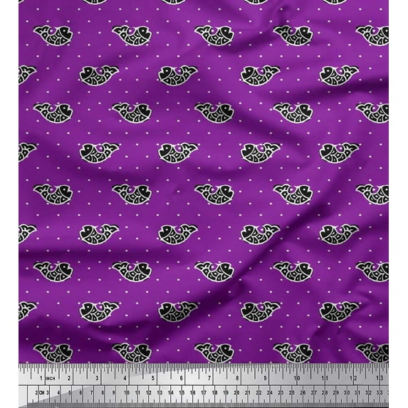 Soimoi Cotton Poplin Fabric Fish Block Print Fabric by The Yard 56 Inch Wide
