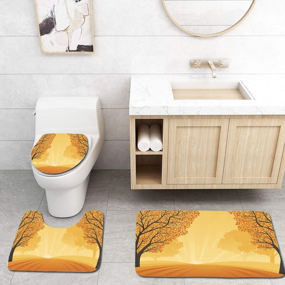 Hero image 0 of PUDMAD Fall 3 Piece Bathroom Rugs Set Bath Rug Contour Mat and Toilet Lid Cover, 0 of 2