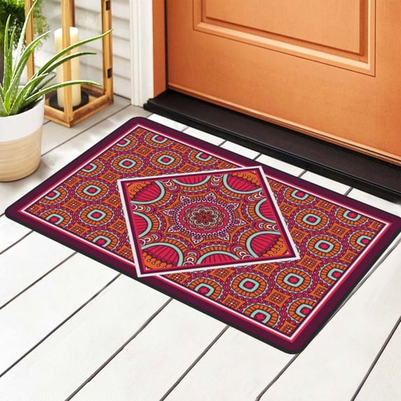 Hero image 0 of DouZhe Geometric Ethnic Floral Batik Rugs Doormat, Non-Slip Machine Washable Carpets Floor Door Mat , 36" x 24", 0 of 7