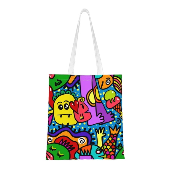Hero image 0 of DouZhe Reusable Grocery Bags, Funny Cute Colourful Monsters Lightweight Polyester Canvas Cloth Tote Bag for Travle Gym Shopping School, 15" x 16", 0 of 7