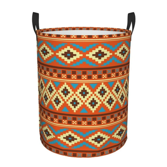 Hero image 0 of DouZhe Waterproof Collapsible Large Laundry Baskets, Retro Tribe Aztec Geometry Prints Circular Hamper with Handles, 0 of 7