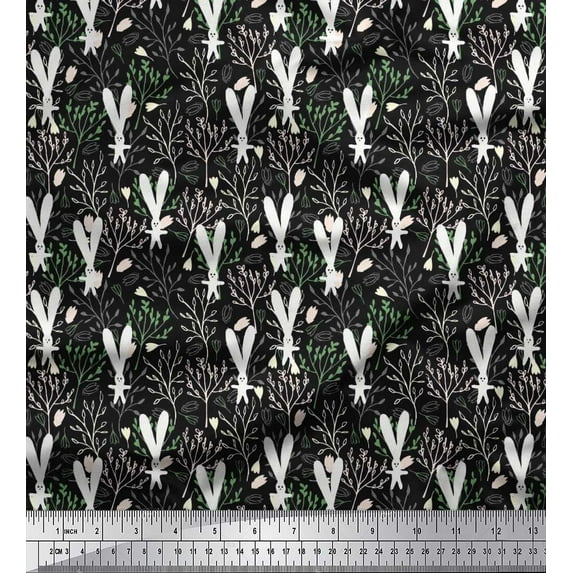 Hero image 0 of Soimoi Moss Georgette Fabric Leaves,Floral & Rabbit Cartoon Print Fabric by The Yard 42 Inch Wide, 0 of 1
