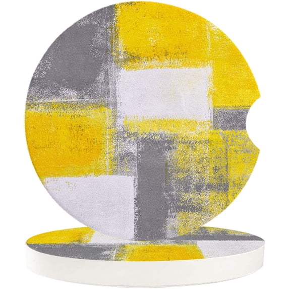 Hero image 0 of FMSHPON Geometric Abstract Oil Painting Style Yellow Set of 6 Car Coaster for Drinks, Absorbent Ceramic Stone Coasters Cup Mat with Cork Base for Home Kitchen Room Coffee Table Bar Decor, 0 of 5