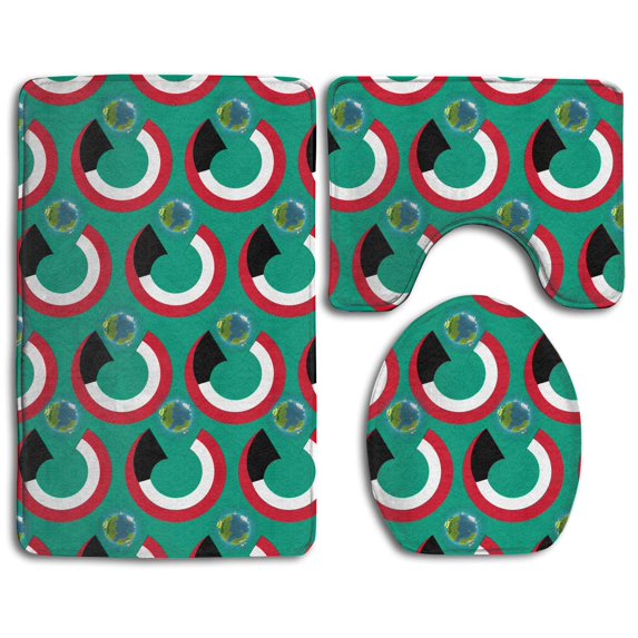 Hero image 0 of PUDMAD Kuwait Flag Eat Earth 3 Piece Bathroom Rugs Set Bath Rug Contour Mat and Toilet Lid Cover, 0 of 2