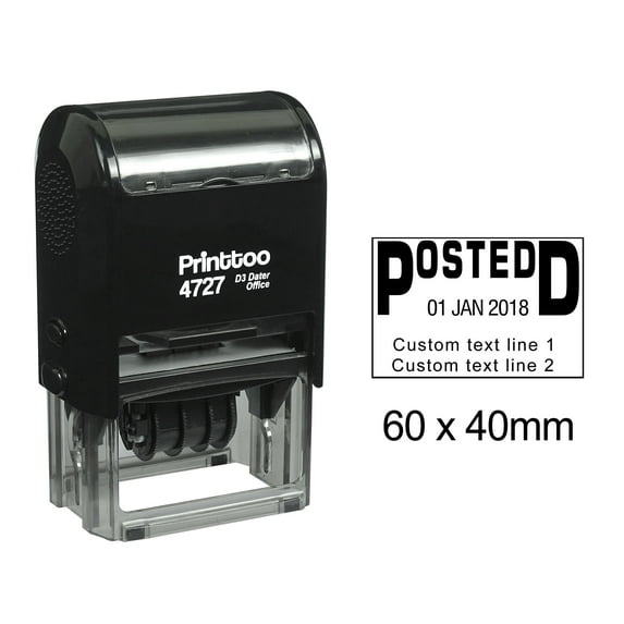Printtoo Dater Stamp Self Inking With Posted & Custom Text Line Office Stationery Date Rubber Stamp-Black