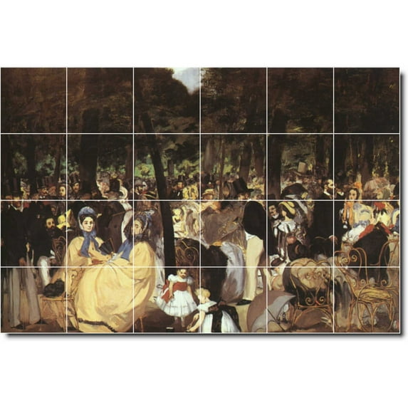 Ceramic Tile Mural-Edouard Manet People Bathroom Tile Mural 10. 72" w x 48" h using (24) 12 x 12 ceramic tilesCeramic Tile Mural Edouard Manet People Bathroom Tile Mural 10 72 w x 48 h using 24 12 x 12 ceramic tilesCeramic Tile Mural Edouard Manet People Bathroom Tile Mural 10 48 w x 32 h using 24 8 x 8 ceramic tilesCeramic Tile Mural Edouard Manet People Bathroom Tile Mural 10 36 w x 24 h using 24 6 x 6 ceramic tiles
