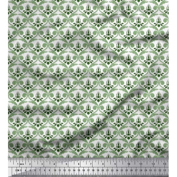 Soimoi Crepe Silk Fabric Ogee Damask Printed Fabric 1 Yard 42 Inch Wide