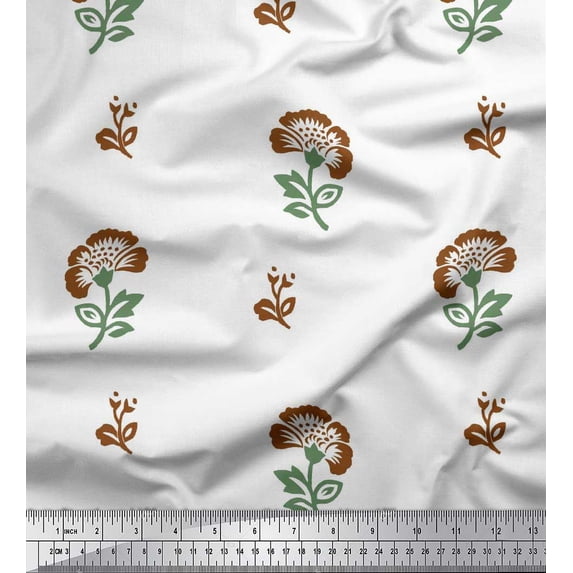 Soimoi Cotton Voile Fabric Leaves & Floral Block Print Sewing Fabric Yard 56 Inch Wide