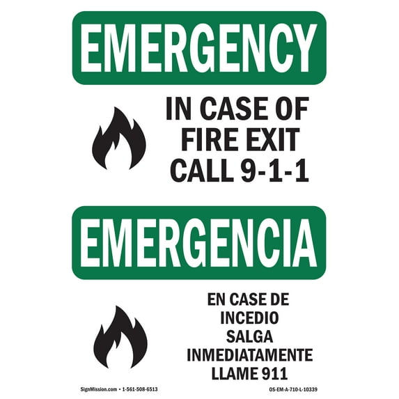 SignMission OS-EM-A-1014-L-10339 10 x 14 in. OSHA Emergency Sign - In Case of Fire Exit Call 9-1-1 BilingualSignMission 10 x 14 in OSHA Emergency Sign In Case of Fire Exit Call 9 1 1 BilingualOSHA EMERGENCY Sign Case Fire Exit Call 9 1 1 Bilingual Plastic Sign Protect Business Work Site Warehouse Shop Area Made USASignMission OS EM A 1824 L 10339 18 x 24 in OSHA Emergency Sign In Case of Fire Exit Call 9 1 1 BilingualOSHA EMERGENCY Sign In Case Of Fire Exit Call 9 1 1 Bilingual Decal Protect Your Business Work Site Warehouse Shop Area Made in the USAOSHA EMERGENCY Sign In Case Of Fire Exit Call 9 1 1 Bilingual Decal Protect Your Business Work Site Warehouse Shop Area Made in the USASignMission 7 x 10 in OSHA Emergency Sign In Case of Fire Exit Call 9 1 1 BilingualOSHA EMERGENCY Sign Case Fire Exit Call 9 1 1 Bilingual Plastic Sign Protect Business Work Site Warehouse Shop Area Made USAOSHA EMERGENCY Sign Case Fire Exit Call 9 1 1 Bilingual Plastic Sign Protect Business Work Site Warehouse Shop Area Made USASignMission 12 x 18 in OSHA Emergency Sign In Case of Fire Exit Call 9 1 1 BilingualOSHA EMERGENCY Sign In Case Of Fire Exit Call 9 1 1 Bilingual Decal Protect Your Business Work Site Warehouse Shop Area Made in the USAOSHA EMERGENCY Sign Case Fire Exit Call 9 1 1 Bilingual Plastic Sign Protect Business Work Site Warehouse Shop Area Made USAOSHA EMERGENCY Sign In Case Of Fire Exit Call 9 1 1 Bilingual Decal Protect Your Business Work Site Warehouse Shop Area Made in the USAOSHA EMERGENCY Sign In Case Of Fire Exit Call 9 1 1 Bilingual Decal Protect Your Business Work Site Warehouse Shop Area Made in the USAOSHA EMERGENCY Sign In Case Of Fire Exit Call 9 1 1 Bilingual Decal Protect Your Business Work Site Warehouse Shop Area Made in the USA