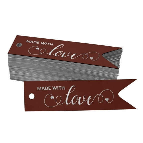 Inkdotpot Pack Of 100 Real Silver Foil Paper Tags Made With Love Text Favor Hang Tags