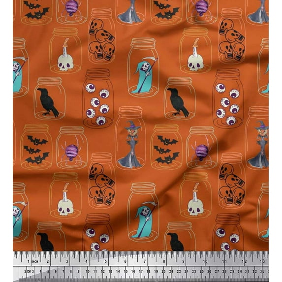 Hero image 0 of Soimoi Satin Silk Fabric Ghost,Skull & Witch Halloween Fabric Prints by Yard 42 Inch Wide, 0 of 1