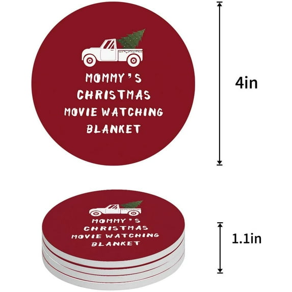 Hero image 0 of FMSHPON Mommy's Christmas Movie Watching Blanket Set of 8 Round Coaster for Drinks, Absorbent Ceramic Stone Coasters Cup Mat with Cork Base for Home Kitchen Room Coffee Table Bar Decor, 0 of 6