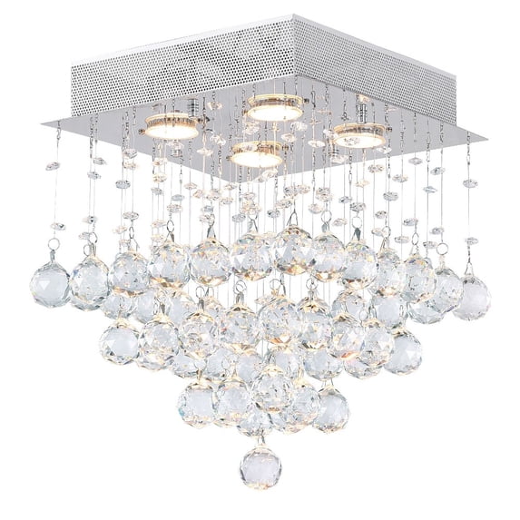 CWI Lighting Square 4 Light Transitional Metal Flush Mount Light in Chrome