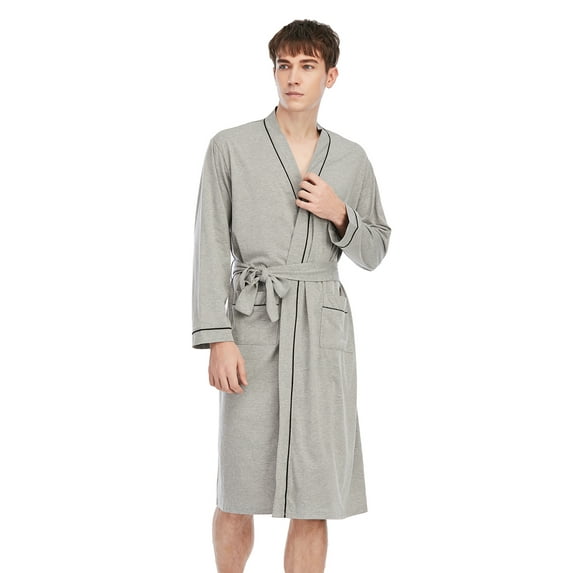 MintLimit Men's Robe Soft Kimono Full Length Knit Bath Robe Mens Long Sleeve Lightweight Nightgown Solid Color Bathrobe Sets with Pockets Gray LMintLimit Men s Robe Soft Kimono Full Length Knit Bath Robe Mens Long Sleeve Lightweight Nightgown Solid Color Bathrobe Sets with Pockets Gray L