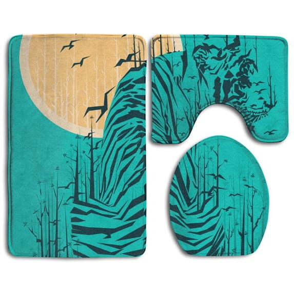 Hero image 0 of PUDMAD Tigers 3 Piece Bathroom Rugs Set Bath Rug Contour Mat and Toilet Lid Cover, 0 of 2