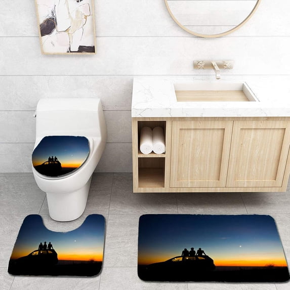 Hero image 0 of PUDMAD Friends 3 Piece Bathroom Rugs Set Bath Rug Contour Mat and Toilet Lid Cover, 0 of 2