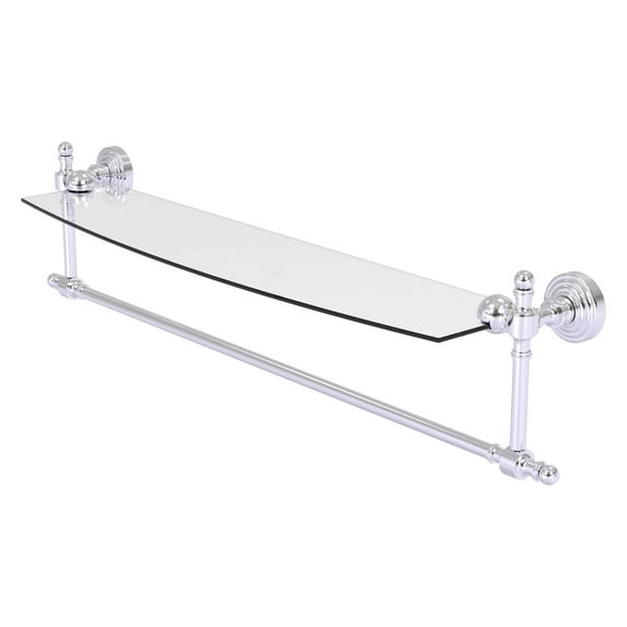 Retro Wave Collection Glass Vanity Shelf with Integrated Towel Bar - Satin Chrome / 24 Inch