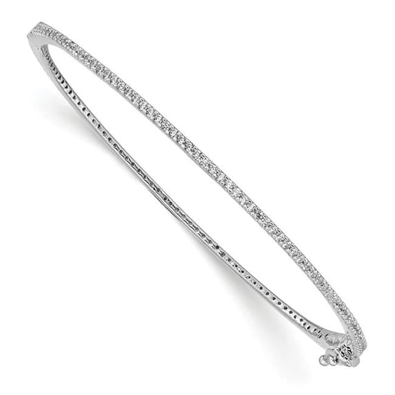 1.55 mm Sterling Silver Rhodium-Plated CZ Hinged Bangle - Polished