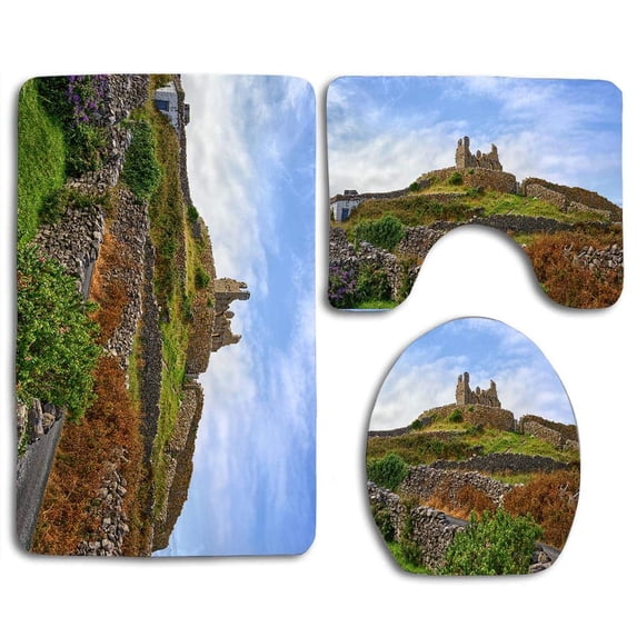 PUDMAD Old School House Gleniff Horseshoe 3 Piece Bathroom Rugs Set Bath Rug Contour Mat and Toilet Lid Cover