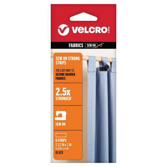 Hero image 0 of VELCRO Brand Sew on Strong Hook and Loop Fastener Strips | 8 Sets, Black | Size 2.5in x 1in, 0 of 6