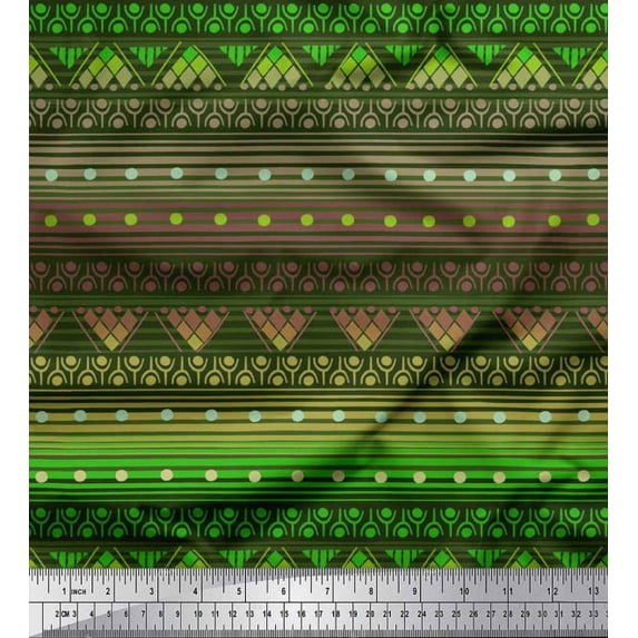 Soimoi Satin Silk Fabric Dot,Stripe & Geometric Ethnic Printed Fabric 1 Yard 42 Inch Wide