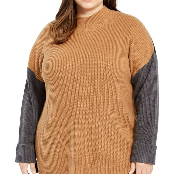 Calvin Klein Womens 3-Tone Pullover Sweater, Multicoloured, Plus Size, 2XCalvin Klein Womens Plus Colorblock Mock Neck Sweater