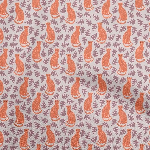 Hero image 0 of oneOoneCottonPoplinTwillOrangeFabricTropicalAbstractLeafWithAnimalSewingMaterialPrintFabricByTheYard56InchWide, 0 of 4