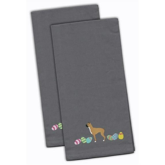 Boxer Easter Gray Embroidered Kitchen Towel - Set of 2