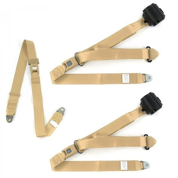 Chevy FS Blazer 1973-1991 Standard 3 Point Tan Retractable Bench Seat Belt Kit - 3 Belts