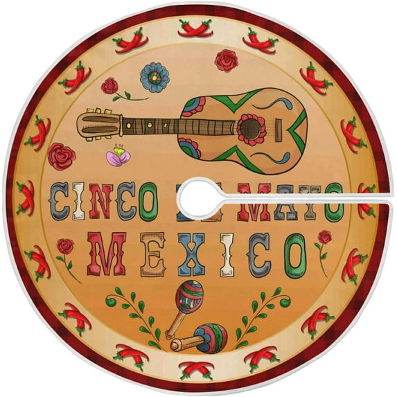 Hero image 0 of FMSHPON Cinco De Mayo Guitar Xmas Christmas Tree Skirt Stand Mat for Holiday Party Decoration Indoor Outdoor 36 inches, 0 of 6