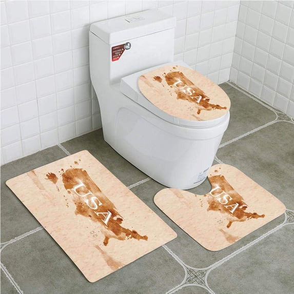 Hero image 0 of PUDMAD Americana Early American Retro Map Country Southwest and Alaska 3 Piece Bathroom Rugs Set Bath Rug Contour Mat and Toilet Lid Cover, 0 of 2