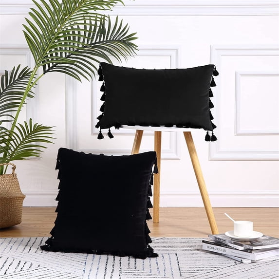 2 Pcs Velvet Throw Pillow Case with Tassels, Boho Throw Pillow Cover Decor Cushion Covers