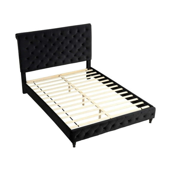 Hero image 0 of Best Master Furniture Ashley Tufted Velvet Fabric Full Platform Bed in Black, 0 of 3