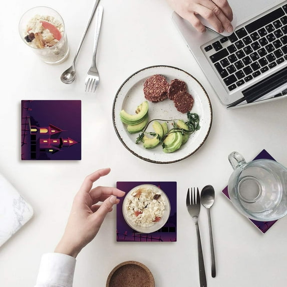 Hero image 0 of FMSHPON Halloween Purple Castle Set of 8 Coaster for Drinks, Absorbent Ceramic Stone Coasters Cup Mat with Cork Base for Home Kitchen Room Coffee Table Bar Decor, 0 of 4