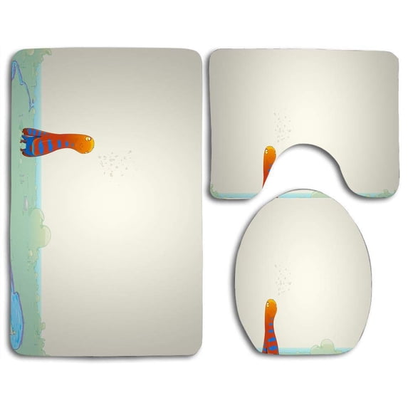 Hero image 0 of PUDMAD Salamander Art 3 Piece Bathroom Rugs Set Bath Rug Contour Mat and Toilet Lid Cover, 0 of 2