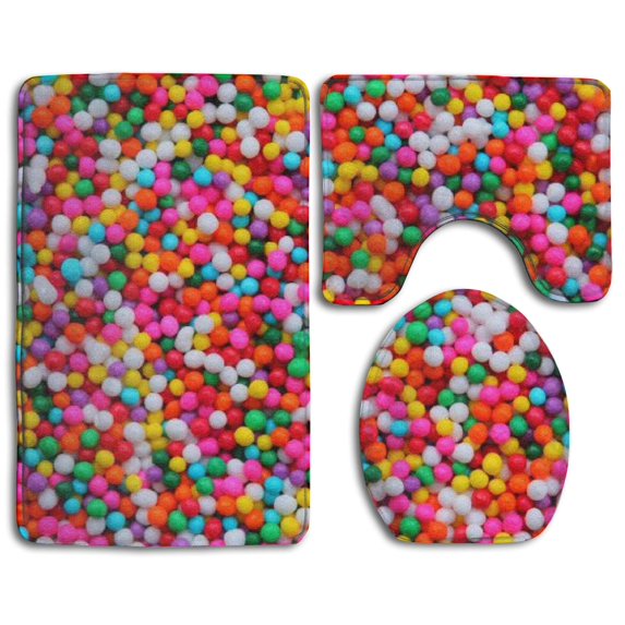 PUDMAD Colours Bead Candy 3 Piece Bathroom Rugs Set Bath Rug Contour Mat and Toilet Lid Cover