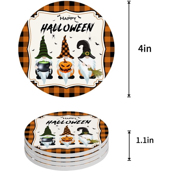 Hero image 0 of FMSHPON Happy Halloween Gnome Pumpkin Orange Buffalo Plaid Set of 6 Round Coaster for Drinks, Absorbent Ceramic Stone Coasters Cup Mat with Cork Base for Home Kitchen Room Coffee Table Bar Decor, 0 of 6