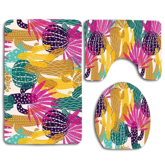 Hero image 0 of PUDMAD Cute Cactus 3 Piece Bathroom Rugs Set Bath Rug Contour Mat and Toilet Lid Cover, 0 of 2