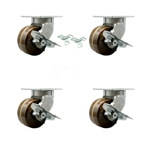 6 Inch Heavy Duty High Temp Phenolic Caster Set 4 Brakes 2 Swivel Locks SCC