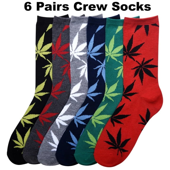 Hero image 0 of 6 PAIRS Marijuana Weed Cannabis Potleaf Rasta Crew Length Fashion Socks, 0 of 7