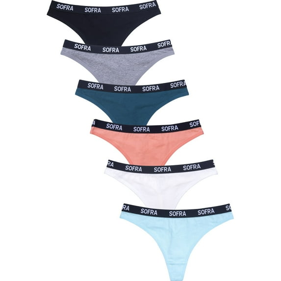 6 Packs of SOFRA Women's Cotton Thong Low Rise Underwear Sexy Panty - Style#6