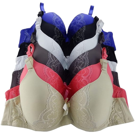 Hero image 0 of 6 Pieces Plus Size Wired Full Cup Light Padded Basic Bra D/DD/DDD (42DDD), 0 of 1
