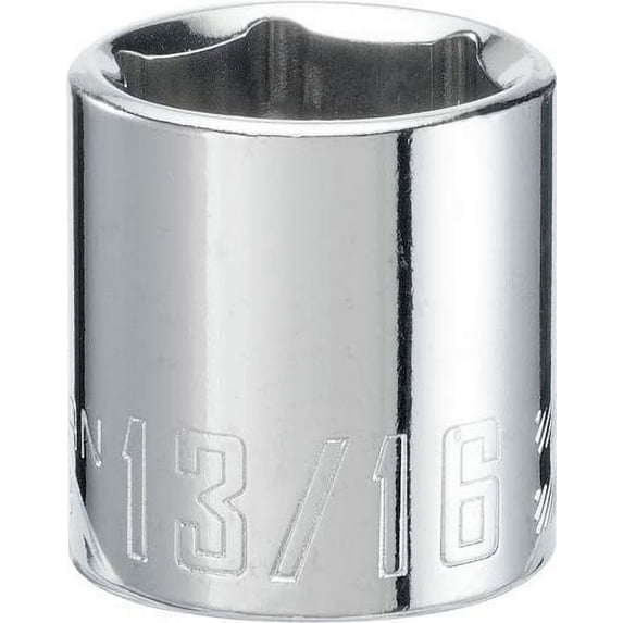 Your toolbox isn't complete without the 13/16-in. Sae shallow socket. This socket Comes with large size markings and a rust resistant coating.