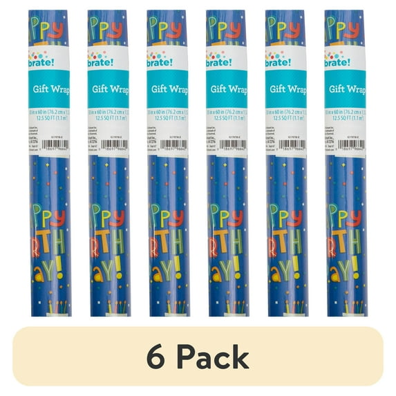 - 6-pack of Multicolor Happy Birthday Gift Wrap Paper, 12.5 sq ft, by Way To Celebrate